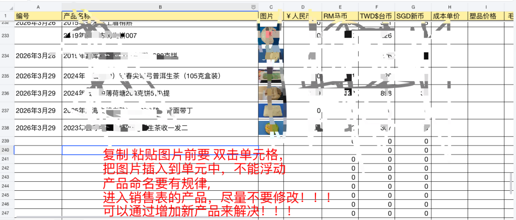 3、进入销售表的产品,不要修改!!如要修改要提前把销售表查询出来,全部改