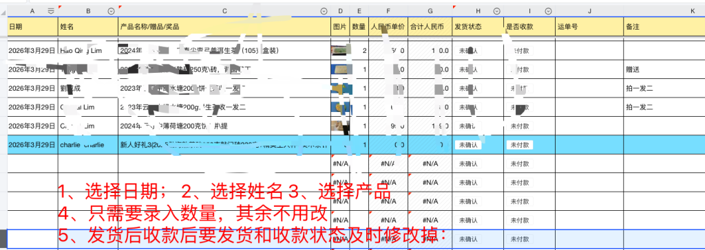 三、销售表:1选择日期,2、选择名字,3、选择产品,4录入数量,其余不用录