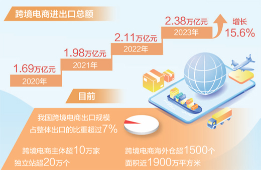 “走出去”之际,周期短、效率高的跨境电商为中国企业提供了一条便捷的通路。商务部数据显示,2023年中国跨境电商进出口总额2.38万亿元,增长15.6%。其中,出口总额超过1.8万亿元,增长19.6%。跨境电商高速发展潜力的背后是企业出海的窗口红利期。